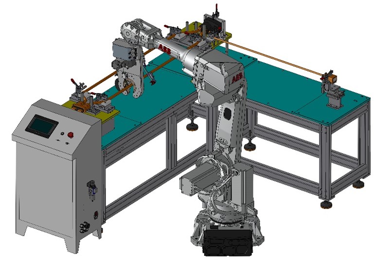 机器人全自动包胶系统具有胶带自动缠绕、自动剪切、自动换型等功能。 该设备配合客户工厂的自动输送线,可以实现线束包胶过程的全自动化,极大地改善了包胶质量,显著地提高了生产效率。